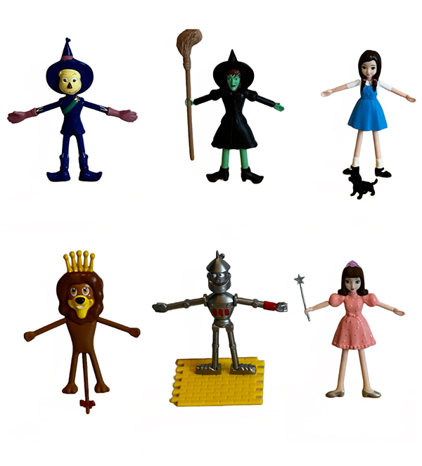 The original Bendables Posable Action Figures are back, with the classic characters . These ultra posable figures feature bendable arms and legs. Set includes Dorothy, Scarecrow, Tin Man, Lion, Glinda, the Wicked Witch and a Bonus 2″ Toto figure with 4 pcs of the Yellow Brick Road.